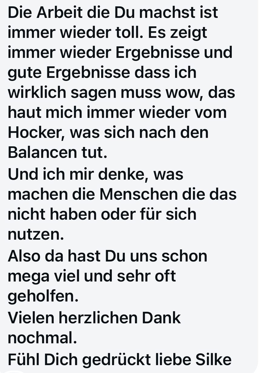Eine Balance hilft dabei, diesen innerlich abgespeicherten Stress zu lösen, dein System auf diese gemachten Erfahrungen zu harmonisieren und es dir zu ermöglichen auf bestimmte Herausforderungen oder herausfordernden Situationen entspannter und gelassener zu reagieren und damit umzugehen.